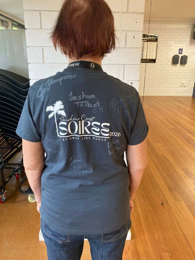 See below the signed shirt that was one by myself ($1500) at the auction on Saturday night at the Soiree, with all of the choreographers signed names (which are wearing off already LOL).