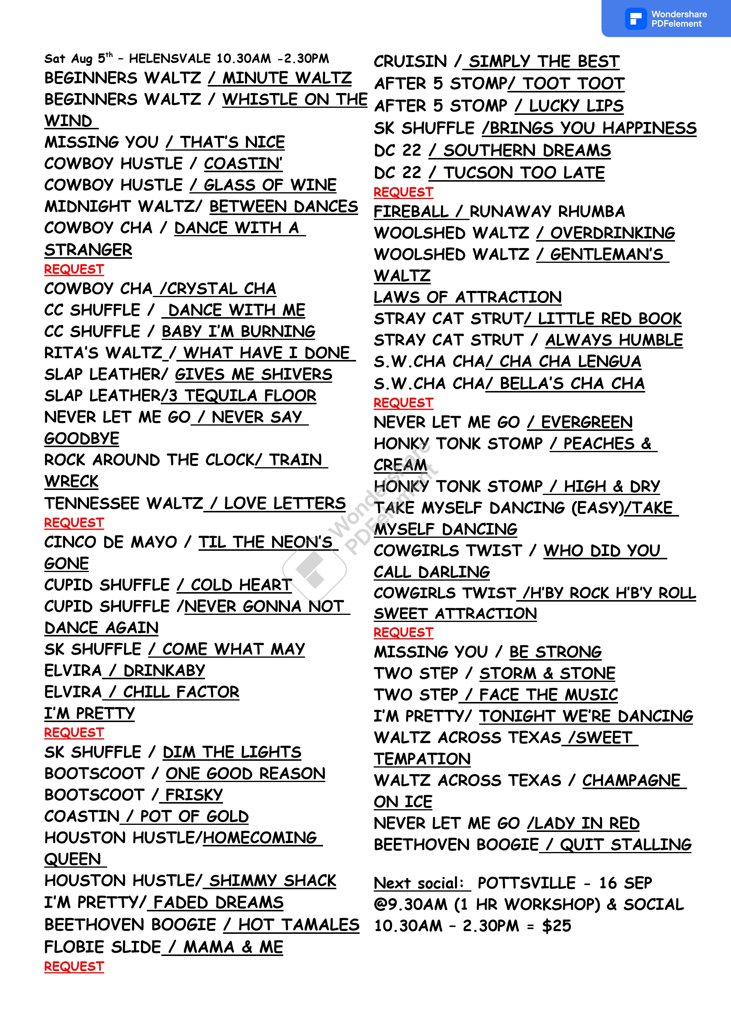 Dances Taught