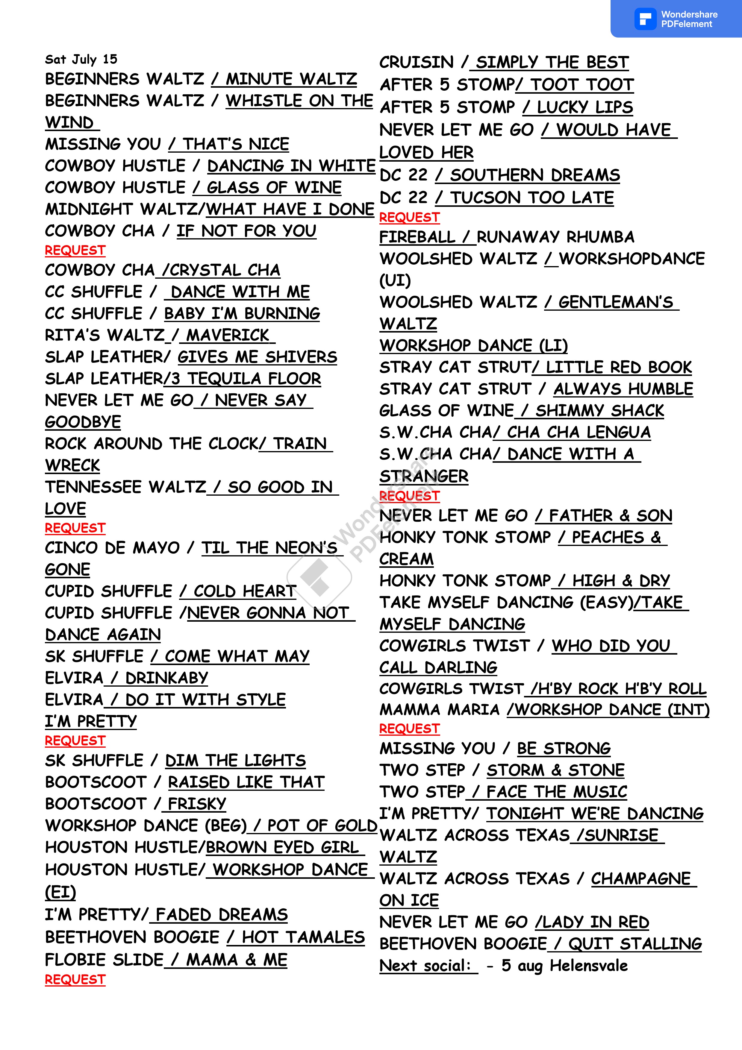 Dances Taught