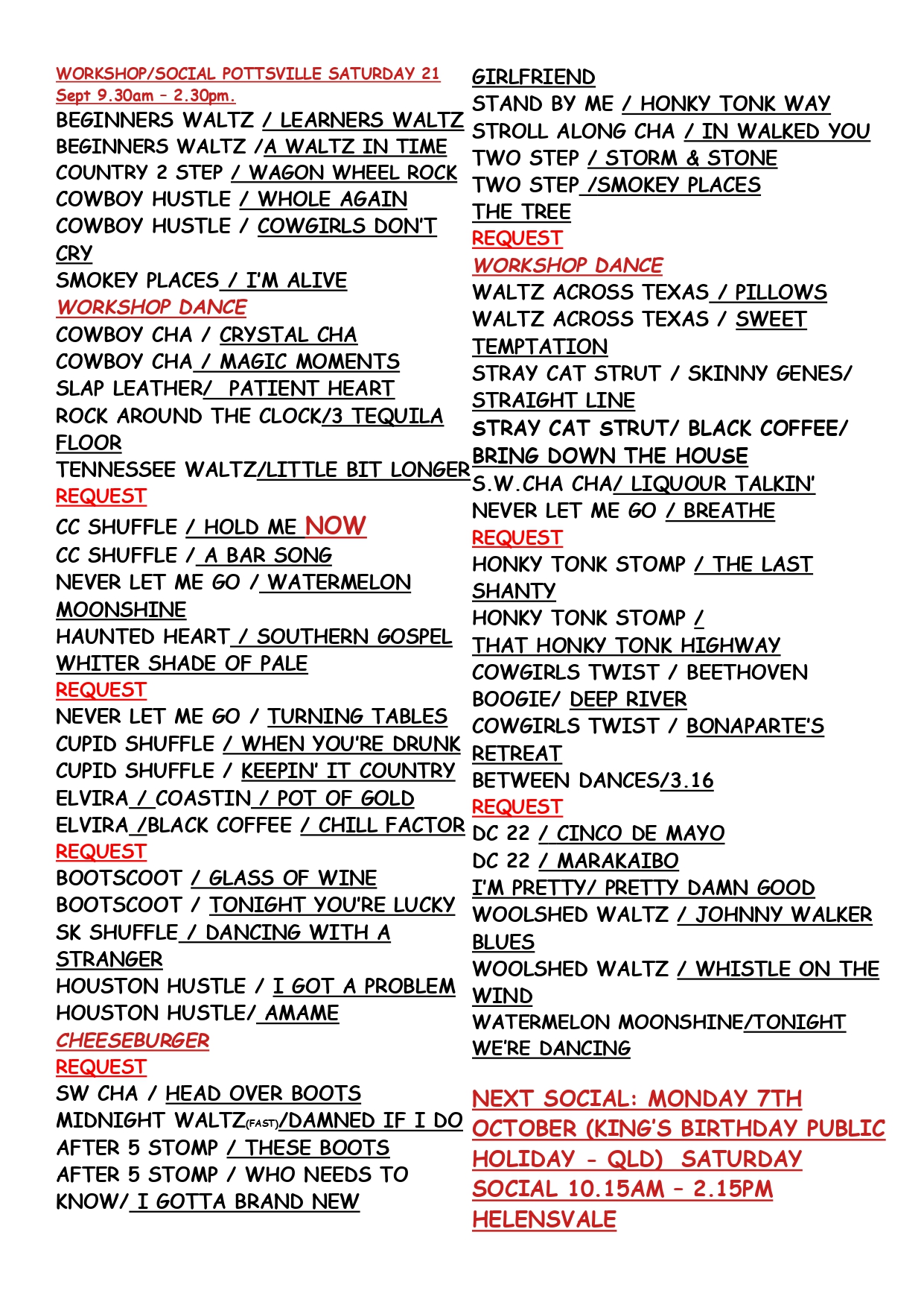 Pottsville 2024 Dance Weekends March 22-23 and July 12-13