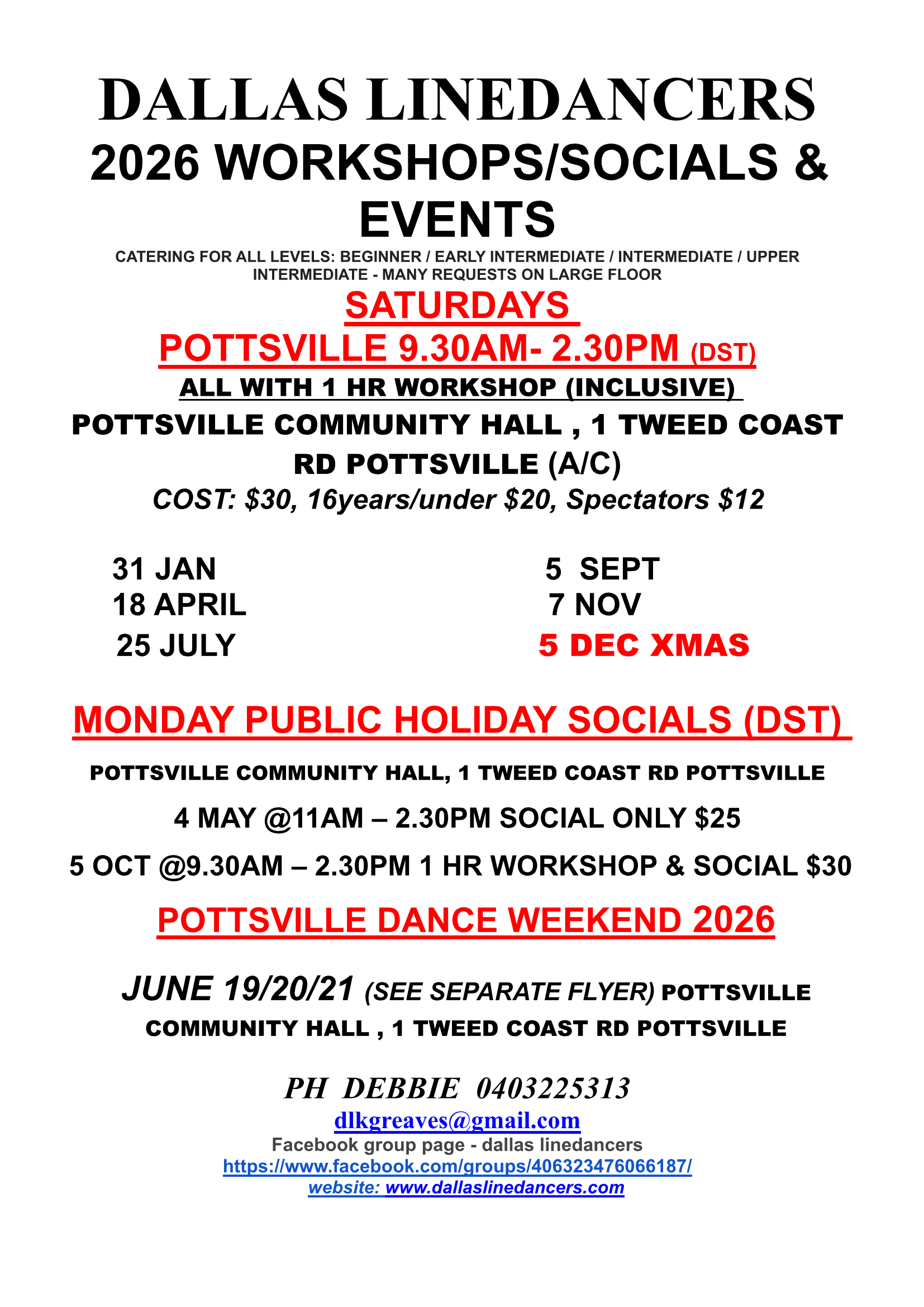 Pottsville 2024 Dance Weekends March 22-23 and July 12-13