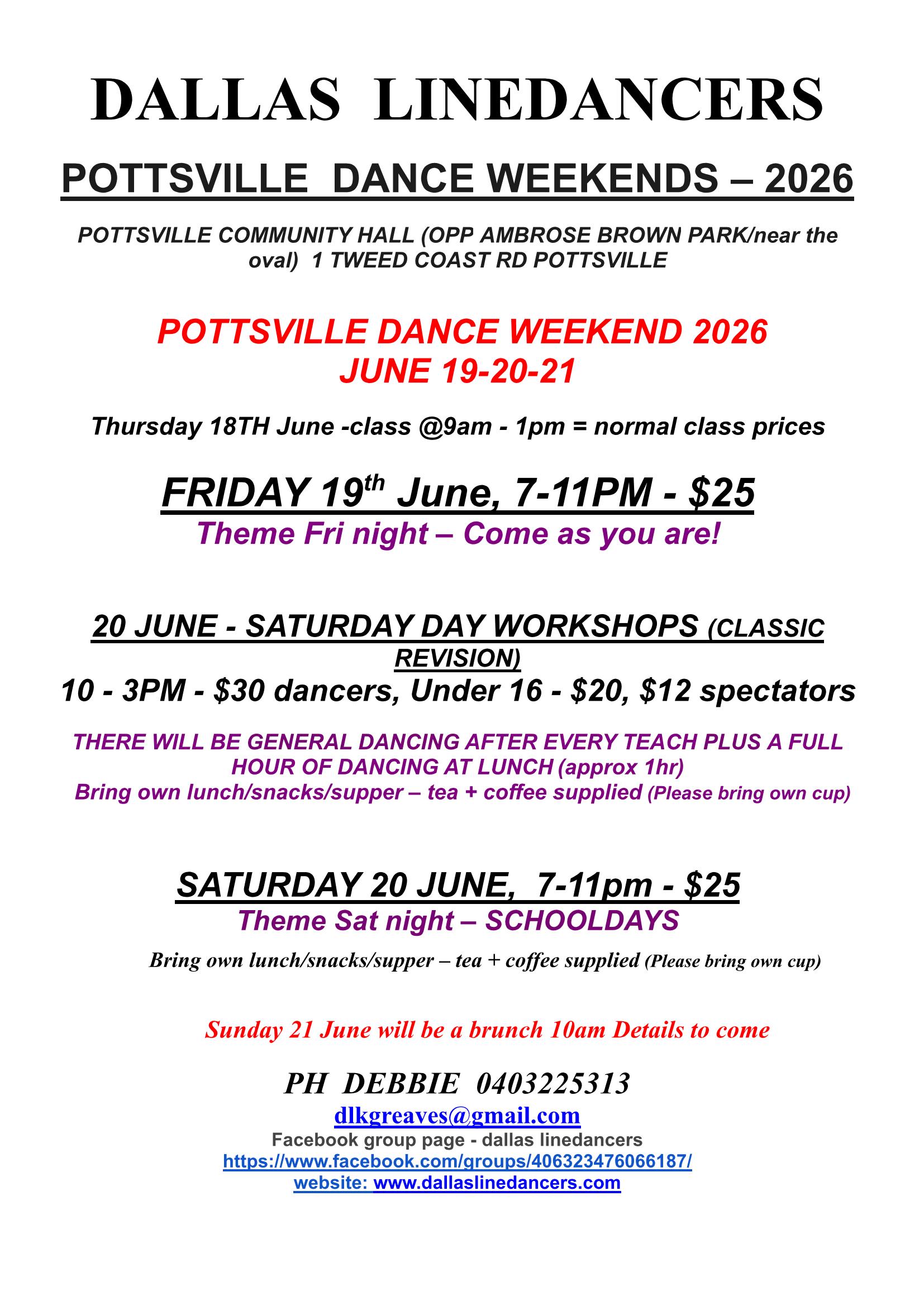 Pottsville 2024 Dance Weekends March 22-23 and July 12-13